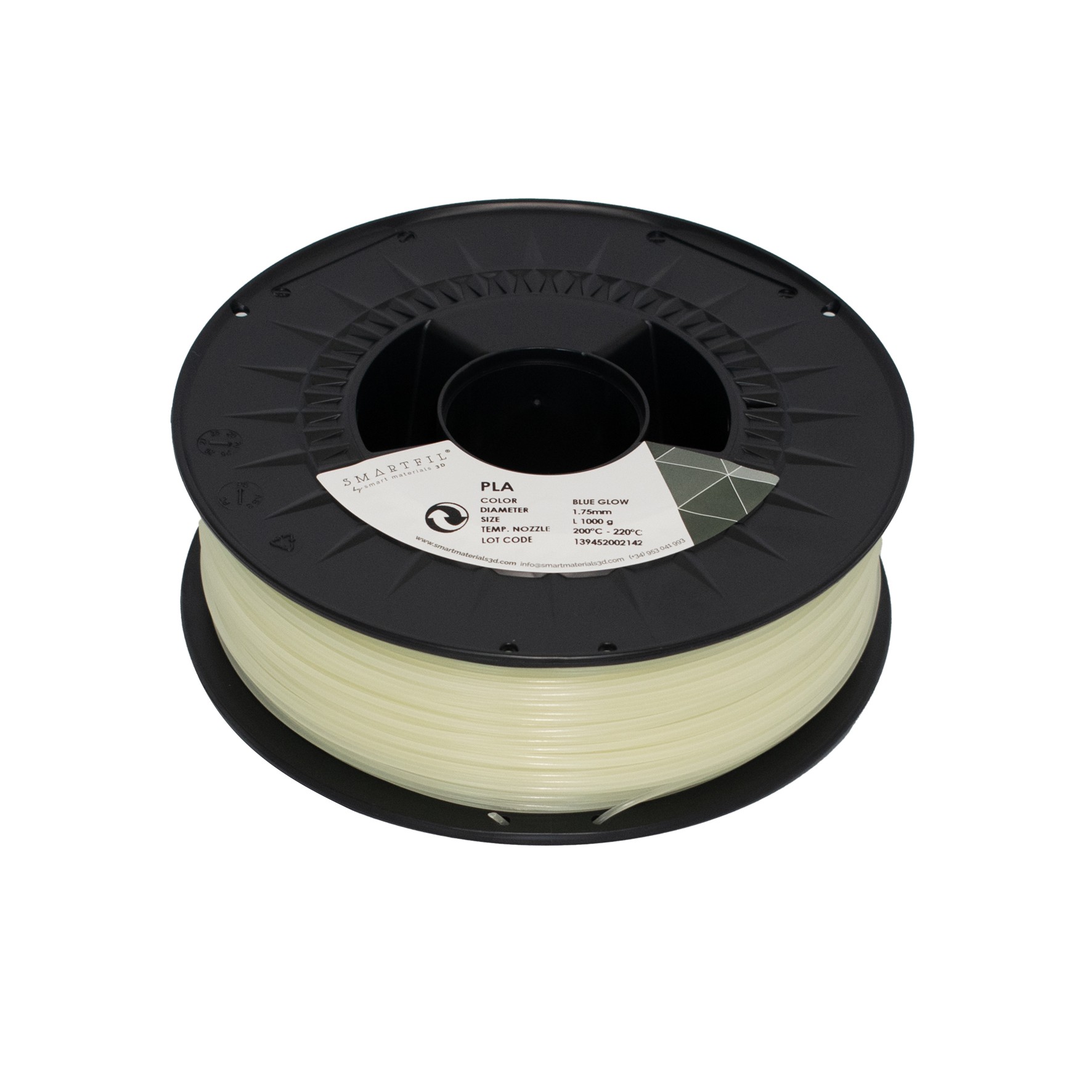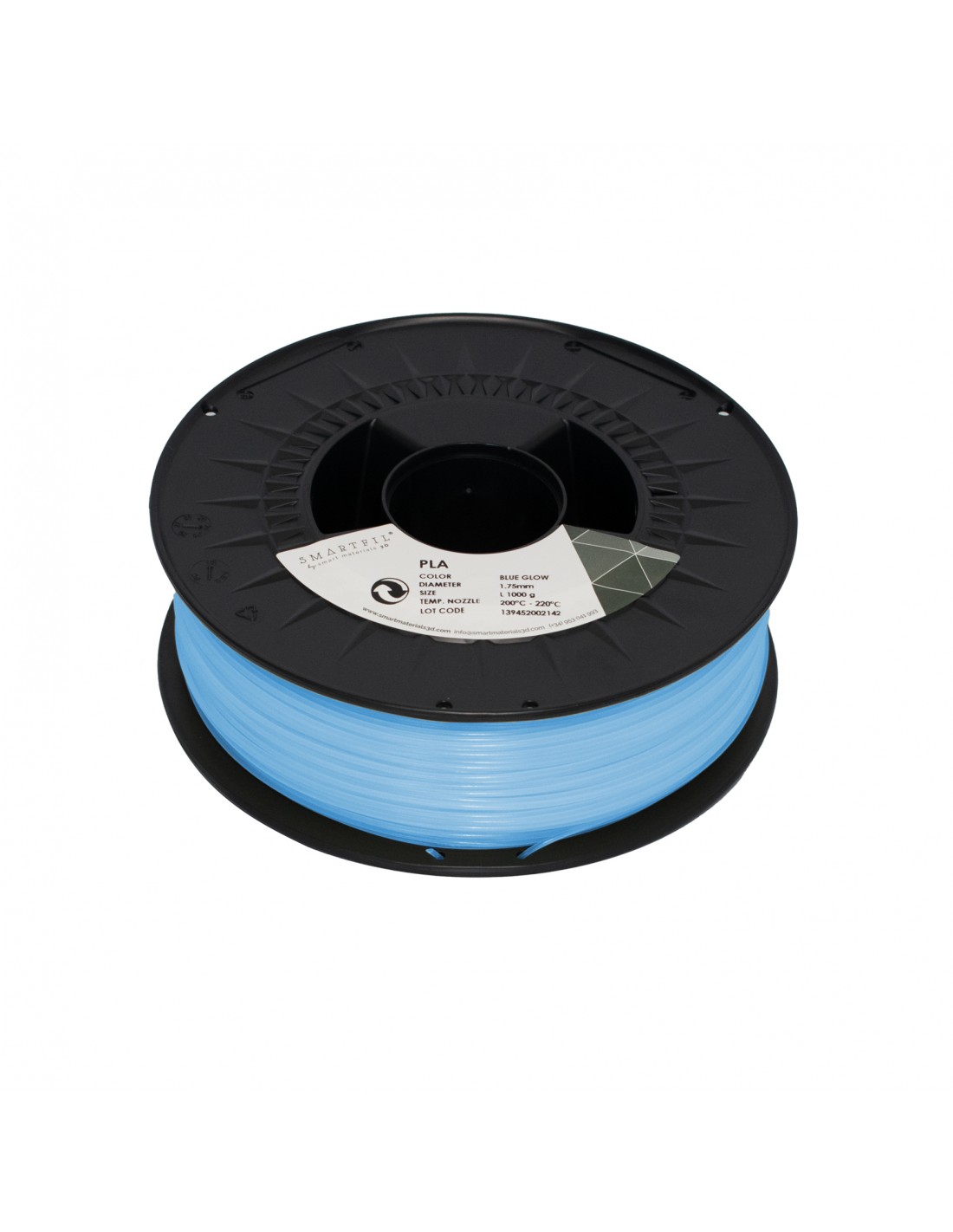 Filamento PLA compuesto por Ácido Poliláctico o Poliláctido. Plástico biodegradable debido a su origen natural (maíz, patata o caña de azúcar) fabricado con PLA de primera calidad, sin incorporación de material reciclado ni recuperado. Totalmente estabilizado y con una variabilidad en diámetro de ±0.03 mm. No produce warping. Excelente resolución en la impresión.